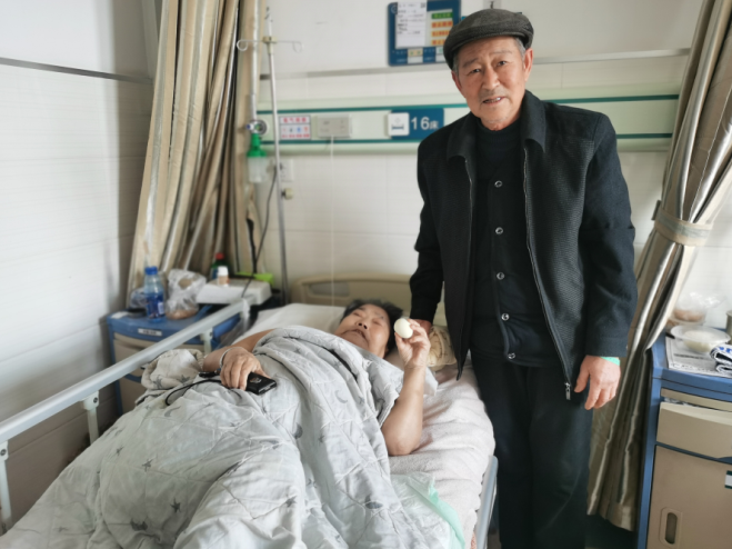 妻子癱瘓后,因嚴(yán)重貧血,吃飯都是大問題,只能躺著吃,20年來的每一口飯都是張道生一勺一勺喂進(jìn)去的。最令人動(dòng)容的是,由于妻子常年臥床,褥瘡在所難免。每天張道生除了堅(jiān)持給妻子擦洗身體之外,還要用碘酒給妻子的褥瘡消毒。碘酒一斤一瓶,一年用掉幾十瓶;蘸碘酒的藥棉一年用掉3.4公斤。
