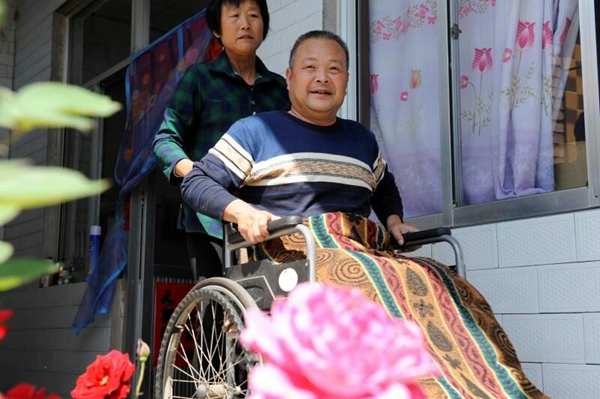 馬振榮推丈夫出來(lái)曬太陽(yáng)