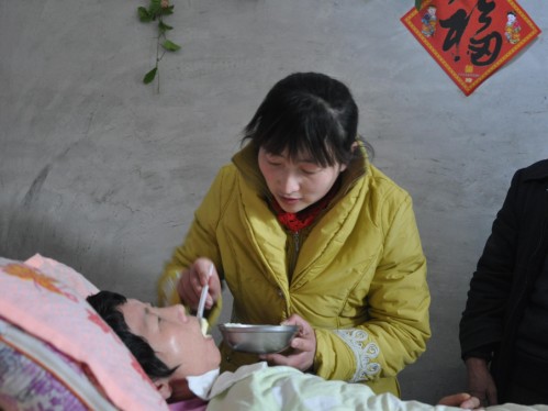 她沒有多想,現(xiàn)實(shí)也不給她機(jī)會(huì)讓她多想。在她深情呼喚了18天后,母親奇跡般的醒來了!那段時(shí)間,她每天早起騎車到醫(yī)院,白天上班,下午下班再到醫(yī)院去照顧母親,晚上還要帶孩子,平均一天只睡四個(gè)小時(shí)的覺。一年來,為了讓母親得到更好的治療,她輾轉(zhuǎn)為母親轉(zhuǎn)了四五次院,吸痰、扣背、翻身、按摩、洗尿布、排大便,每一項(xiàng)護(hù)理她都不厭其煩;自制八寶營(yíng)養(yǎng)餐、煲湯、挑魚刺、炸水果汁,每一頓飯她都要精挑細(xì)選精心制作。