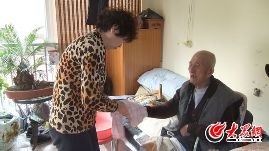 1998年4月,老人不小心骨折,此后便一直癱瘓?jiān)诖。房澤秋和于海悉心照料老人,給老人理發(fā)、刮胡子、剪指甲、修腳、收拾大小便。這么多年,老人身上沒(méi)有長(zhǎng)過(guò)一個(gè)痱子,沒(méi)生過(guò)一個(gè)褥瘡。