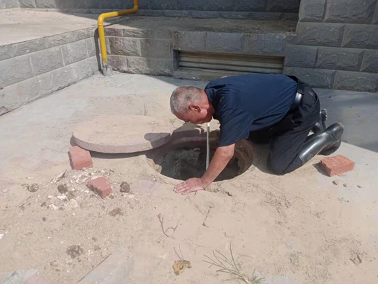 王允功在錦華十區(qū)為居民疏通堵塞的下水管道