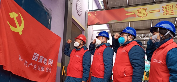 2020年1月31日徐學(xué)峰帶領(lǐng)黨員服務(wù)隊(duì)員在臨時(shí)防疫辦公房供電施工處現(xiàn)場(chǎng)宣誓