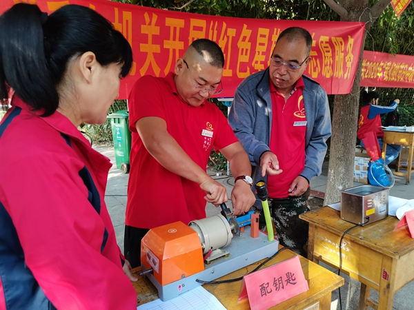 2020年9月26日陳寶明(圖中)在金茵社區(qū)開(kāi)展便民服務(wù)