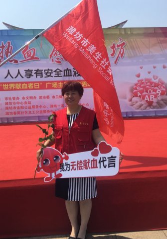 王明秀,女,1973年出生,濰坊友信復(fù)合材料有限公司的負(fù)責(zé)人、濰坊市美生社會(huì)工作服務(wù)中心理事長(zhǎng)。多年來(lái),她一直熱衷于公益事業(yè),不計(jì)得失、甘于奉獻(xiàn)。經(jīng)常利用業(yè)余時(shí)間組織、參與關(guān)愛(ài)老人、助學(xué)、扶貧、公益慈善傳播、引領(lǐng)養(yǎng)生健身等多項(xiàng)公益志愿活動(dòng)。先后組織參與走進(jìn)社區(qū)及幫扶特殊群體志愿服務(wù)活動(dòng)300余次,服務(wù)對(duì)象1500多人次,開展健康公益活動(dòng)100多次,幫扶對(duì)象800多人。