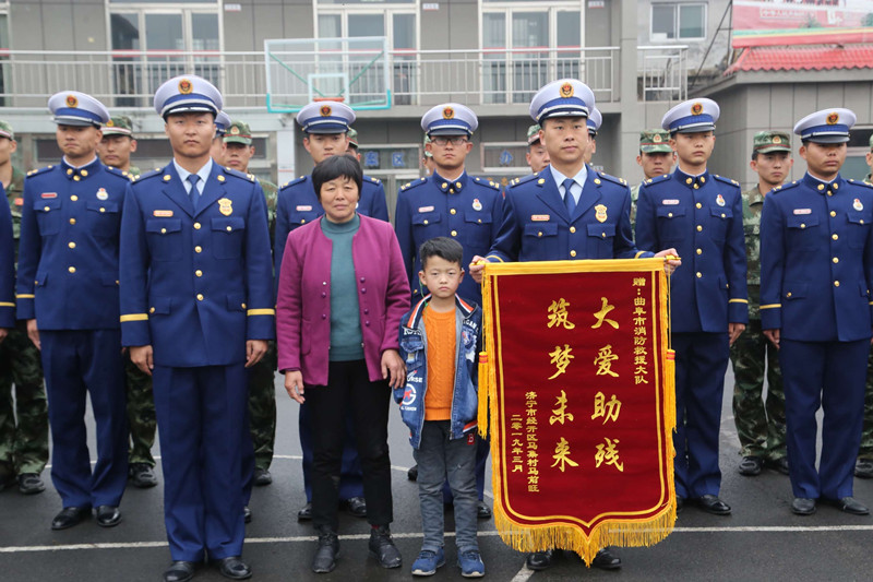 2016年2月,一個偶然的機會,張鵬得知了聾啞兒童小前旺的不幸遭遇。小前旺和姐姐先天殘疾,為給其看病家里花光了所有積蓄,母親離去,體弱多病的父親操勞成疾臥床不起,命運的艱辛沒給這個家庭一絲喘息。在張鵬的影響下,隊員們也一起自發(fā)承擔起了資助小前旺的任務,連續(xù)3年,承擔小前旺學齡前學費和生活費2萬余元。2019年3月,小前旺來到消防隊要當面告訴所有叔叔一個好消息。當孩子還不是很流利的說出“叔叔,我會說話了,謝謝你們!”他的內(nèi)心被深深刺痛了一下,淚水浸潤了眼眶。“當初要不是咱們的戰(zhàn)士忙前忙后、籌錢籌物,就沒有孩子的今天,你們就是他的再生父母!闭f完前旺的奶奶用干裂的手抹去了眼中激動的淚水。如今,小前旺已經(jīng)和正常小朋友一樣,在學校里快樂的成長學習。