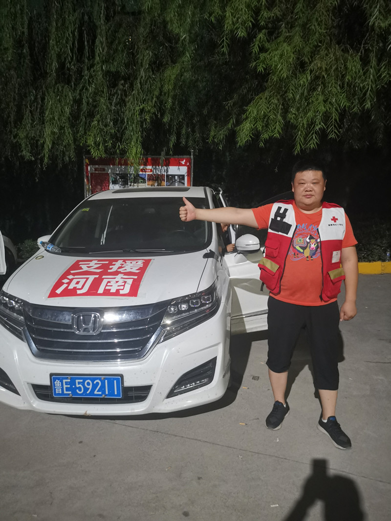 近日,河南遭受暴雨,1300多萬(wàn)人受災(zāi)的消息,牽動(dòng)了全國(guó)億萬(wàn)人民的心,張振楠也不例外!皬闹篮幽媳┯晔転(zāi)后,我就一直想做些什么!睆堈耖f(shuō),“直到看到一位村支書(shū)因物資缺乏每天只能給志愿者發(fā)放一瓶礦泉水,而滿(mǎn)含眼淚的給大家道歉時(shí),我在家就呆不住了,腦子里就一個(gè)念頭,我要去支援河南!”由于怕家人擔(dān)心,起初這個(gè)想法,張振楠并未敢和家人提起。7月21日一早,張振楠便組織起了7名“青年突擊隊(duì)”隊(duì)員趕往臨沂購(gòu)買(mǎi)物資,22日上午,他便和隊(duì)友駕駛著三輛滿(mǎn)載救生衣、礦泉水、方便面等救援物資的車(chē),火速的趕赴河南,參加救援。物資送達(dá)目的地后,張振楠發(fā)現(xiàn)災(zāi)情遠(yuǎn)比想象中嚴(yán)重的多,于是他當(dāng)即決定留下來(lái),并向河南新密紅十字會(huì)遞交了《請(qǐng)戰(zhàn)書(shū)》,請(qǐng)求奔赴一線(xiàn)。在河南擔(dān)任志愿者,幫助救災(zāi)期間,他還不忘繼續(xù)聯(lián)系家鄉(xiāng)的愛(ài)心人士捐贈(zèng)救援物資。
