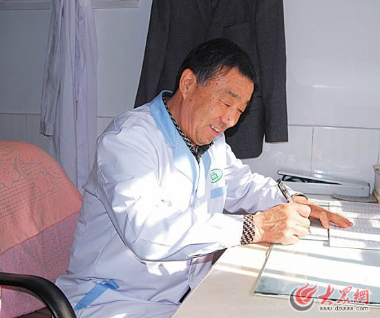 王義明是嶗山北麓江家土寨社區(qū)的普通鄉(xiāng)村醫(yī)生,但因他把“價廉就診”、“把病人當(dāng)親人”這一行醫(yī)信念堅(jiān)持了41年,而廣受十里八鄉(xiāng)鄉(xiāng)親們的愛戴。