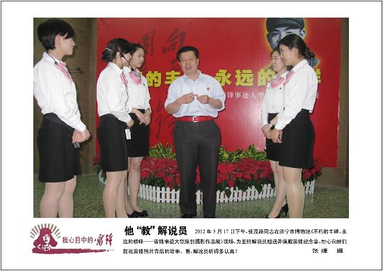 張茂路同志1970年入伍,1986年從部隊轉(zhuǎn)業(yè)安排在金融系統(tǒng)工作,2010年退休。張茂路同志一生熱愛雷鋒,崇拜雷鋒,他從小就下定決心:一輩子收藏雷鋒,一輩子學(xué)習(xí)雷鋒,一輩子只做好事,一輩子甘當(dāng)“傻子”。經(jīng)過40多年的努力,開辦了“紅色家庭收藏館”,其中收藏雷鋒史料一萬多件,被《齊魯晚報》稱為“雷鋒博物館”,2008年被中國收藏家協(xié)會評為“全國紅色收藏之星”,2011年加入中華雷鋒文化促進會,全國雷鋒專題藏友聯(lián)誼會,光榮地出席了全國第十次軍民學(xué)雷鋒經(jīng)驗交流會。張茂路自費制作展板200多塊,辦起了雷鋒事跡展覽館,長年免費對外開放,觀眾已達15萬人次。該同志擔(dān)任14所中小學(xué)的校外輔導(dǎo)員,作雷鋒事跡報告100多場次,被評為濟寧市關(guān)心一下代先進個人、山東省“優(yōu)秀少先隊輔導(dǎo)員”。