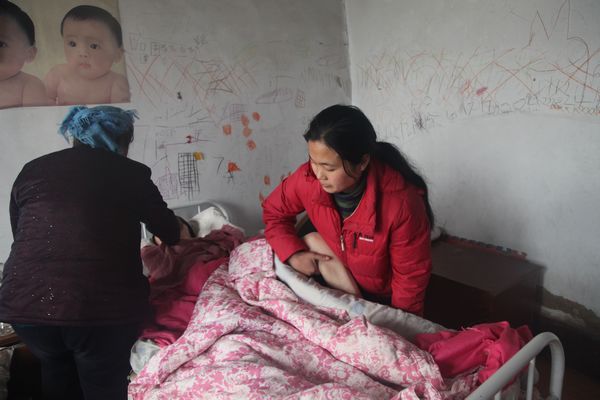 他每天兩小時(shí)一翻身,夏天還好,冬天起來給他翻身懂得再躺下根本睡不著,農(nóng)忙的時(shí)候又要忙地里的活,又得照顧他根本受不了。晚上燈一直開著,不知道壞了多少燈泡,第一次壞的時(shí)候不知道以為是線路,以前都是他換我從來沒有干過這事,叫哥哥過來看了看是燈泡壞了,當(dāng)時(shí)我在他床前大哭了一場(chǎng),一個(gè)小小的燈泡我都不懂。現(xiàn)在以前沒有干過的活都?jí)涸谖业纳砩希⒆、老人的生活也隨著一落千丈,生活的艱辛,精神的壓力,讓我產(chǎn)生過輕生的念頭,感覺活著對(duì)我來說一點(diǎn)意義都沒有了,沒有他的照顧,沒有依靠,沒有未來。因?yàn)殚_車撞他的司機(jī)車是借的,無證駕駛,他還是一個(gè)刑釋不到一個(gè)月、無父無母的人,車無任何保險(xiǎn),我們沒有得到一分錢的賠付,所有的花銷都?jí)涸谖覀兊纳砩稀?