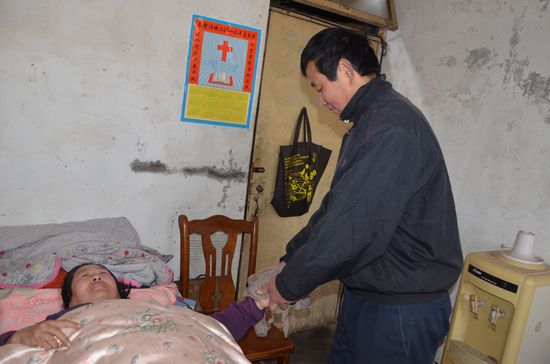出院后,面對(duì)已完全喪失自理能力的妻子,陳德重沒(méi)有氣餒。當(dāng)時(shí)妻子知覺(jué)完全喪失,冷熱不知,吃飯全靠喂,為給妻子吃好每一頓飯,他先自己嘗一嘗,認(rèn)為溫度適宜才喂下去。妻子大小便失禁,他每天都要為妻子擦屎擦尿十幾次。怕長(zhǎng)時(shí)間躺在床上生瘡,他每天都要幫妻子翻身十幾次。為了能夠給妻子繼續(xù)治療、補(bǔ)充營(yíng)養(yǎng),他一邊照顧妻子,一邊上班掙錢。因睡眠不足、營(yíng)養(yǎng)不良,又加上體力消耗過(guò)大,陳德重的身體日漸消瘦,體重下降三十多斤,承受著外人難以想象的壓力和艱辛。
