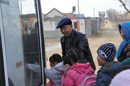 任老師常說雷鋒精神的本質(zhì),就是助人為樂。2008年秋,任允好發(fā)現(xiàn)村里的孩子們要在村南十字路口乘車到離村3里外的東軫格莊小學上學,那里地處交通要道,車流量大,又臨近水庫,存在安全隱患。為了讓孩子們安全上下學,他便約上一位老兄弟,每天早晨7點,下午4點30分,準時到路口等候,維持上車秩序,帶領(lǐng)孩子們回家,四年來風雨無阻。去年冬天風雪大,班車無法運行,他對幾位家長說:“咱們護送孩子去學校!彼窒乔懊孀撸┖竦牡胤,他用锨搬掉雪,再讓學生們走。當護送到學校后,校長教師深受感動。