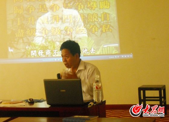 2011年5月19日在北京天普太陽能國學(xué)基地的一次學(xué)習(xí),讓他癡迷上了中國傳統(tǒng)文化弟子規(guī)。北京的朋友送給他了幾本有關(guān)弟子規(guī)方面的書籍和光盤;貋砗,他仔細(xì)地看了起來。他一遍一遍地反復(fù)觀看光盤,每看一遍都有新的感悟。現(xiàn)實(shí)生活中出現(xiàn)的不孝、忤逆、道德缺失等,無不與古訓(xùn)弟子規(guī)相悖。為了深入了解有多少人知道弟子規(guī),他還做起社會(huì)調(diào)查,走上和街頭和一些市民、學(xué)生攀談。在很多市民眼中不知道弟子規(guī)是什么,更有甚者,學(xué)生當(dāng)中不知道的也大有人在。中國的傳統(tǒng)文化竟然不知道,他匪夷所思。于是產(chǎn)生了要傳播弟子規(guī)的想法,他自籌資金8000元,從北京的朋友那里購進(jìn)了有關(guān)弟子規(guī)的書籍和光盤,免費(fèi)送給一些朋友。后來,他又對(duì)一些機(jī)關(guān)單位免費(fèi)送。他感覺到這樣的影響面還是小,要想讓更多的人了解、融入中國傳統(tǒng)文化,還有一段很長的距離。經(jīng)過苦思冥想,他決定購買放映設(shè)備。他把準(zhǔn)備進(jìn)貨的錢買來了一臺(tái)筆記本電腦、投影機(jī)三臺(tái)等放映設(shè)備;貋砗,妻子、兒子都抱怨他,你發(fā)什么的神經(jīng)啊!弄這干么,放著好好的生意不做。但是,他像著了魔似的,誰的話也聽不進(jìn)去。晚上,他選擇了人相對(duì)集中的湖西革命歷史陵園門口,架起設(shè)備演了起來。
