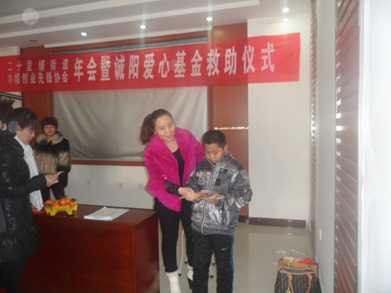 2010年二十里鋪街道“誠陽愛心基金”成立暨貧困兒童救助啟動儀式上,李娟捐出了5000元錢;她曾經(jīng)自費購買幾十箱蛋糕去送到濟(jì)寧市社會福利院;也曾經(jīng)安排貧困家庭的子女到自己的廠里就業(yè)!斑@樣的孩子,最渴望母愛,渴望被關(guān)心,我都像自己的孩子一樣,無法割舍對他們的牽掛。想想孩子們的命運可能因此而改變,我就感到充滿希望,充滿動力,覺得自己的付出有價值!闭f起資助貧困兒童,李娟動情地說。