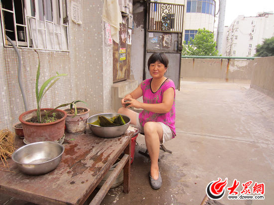 趙麗華心里清楚,因?yàn)槌D暝谶@里賣粽子,鄰里街坊都聽(tīng)說(shuō)過(guò)她家的困難,所以很多人買粽子都是為了幫幫她。她自己知道感恩,所以刷粽葉、包粽子從不糊弄。