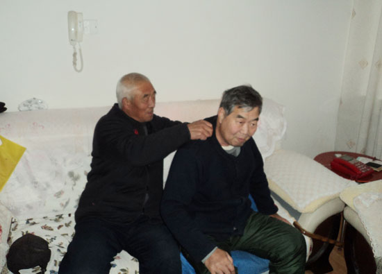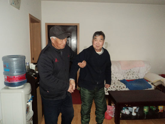 為了幫助魏福順增強(qiáng)體質(zhì),能夠堅(jiān)持進(jìn)行體能恢復(fù)鍛煉,馬貴明經(jīng)常鼓勵(lì)他多鍛煉、多活動(dòng)。天氣好時(shí),馬貴明就陪同魏師傅出門(mén)散步、走路;遇到天氣不好時(shí),馬貴明就在家給他按摩、推拿、拔火罐,攙扶著魏師傅在家里鍛煉。魏福順的病情需要常年吃藥,馬貴明就經(jīng)常到醫(yī)院給他抓藥。幾年下來(lái),馬貴明已經(jīng)成了魏福順師傅的依靠和拐仗。魏福順因病記性差,出門(mén)時(shí)不是忘了帶鑰匙,就是忘了關(guān)門(mén),或者回來(lái)時(shí)忘了拿凳子,經(jīng)常丟三拉四。有一次,他出門(mén)鍛煉時(shí)走失了,該吃晚飯了還未見(jiàn)回來(lái),他老伴急得坐立不安。馬貴明得知后,二話沒(méi)說(shuō),騎著三輪車(chē)走遍附近他經(jīng)常去的地方,終于找到了他,把他安全送到家中。還有一天中午,魏福順的老伴病情加重,住進(jìn)勝利醫(yī)院,剩他一人在家。馬貴明遛彎回來(lái)時(shí),在他家門(mén)口聞到一股撲鼻的天然氣氣味,就立即敲開(kāi)魏福順家的門(mén),發(fā)現(xiàn)爐火滅了,氣閥門(mén)沒(méi)關(guān),只聽(tīng)見(jiàn)天然氣“絲絲”往外冒的聲音,氣味熏天,幸虧馬貴明及時(shí)趕到,才避免了一場(chǎng)事故。