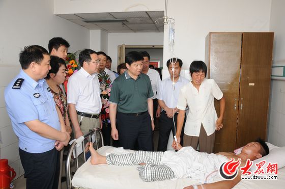 2013年7月13日上午,巨野縣委書記成偉,縣委副書記、縣長劉文林帶著有關(guān)部門人員來到醫(yī)院,送來慰問金,為負(fù)傷的協(xié)警送上祝福。成偉在病房內(nèi)表示:不會讓英雄的血白留!英雄們以不怕流血犧牲的精神,維護(hù)了一方平安,彰顯大無畏的英勇精神。要抓緊辦案,依法嚴(yán)懲兇犯,并及時表彰,號召全縣學(xué)習(xí)他們的精神。
