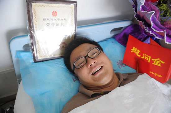 初步配型成功只是第一步,還要進(jìn)行更深入的配型分析,張輝積極配合化驗與體檢,經(jīng)過多次檢查,最終配型成功了!這個消息讓張輝振奮異常,要知道,骨髓配型成功率只有十萬分之一,我市自開展造血干細(xì)胞捐獻(xiàn)活動以來,只有12名志愿者成功捐獻(xiàn)骨髓,張輝是第13名,捐獻(xiàn)初步定于2013年5月進(jìn)行。
