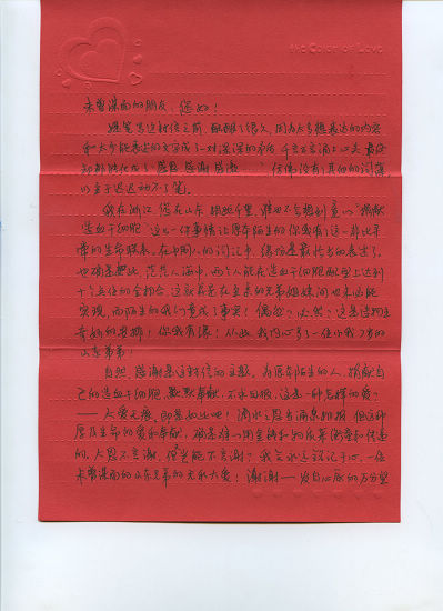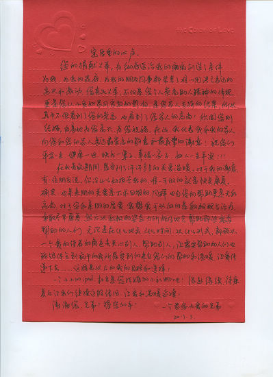 張輝收到感謝信