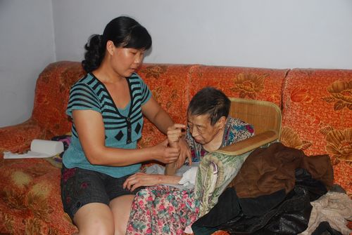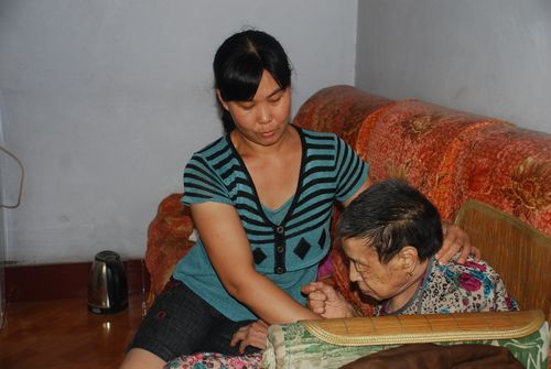 就這樣把婆婆當做親娘看待,每天給她洗臉、洗手、端水、喂飯、倒大小便。盡管婆婆大小便失禁,但她還是每天按時幫婆婆大小便,年年如此。十個春夏,十個秋冬,每天她不管多累,總是先照顧老人的起居,總是做的盡心盡力、毫無怨言。有時晚上婆婆不注意就尿到床上,衣服跟被褥都濕透了,早上起來看見婆婆難受的表情,她感到非常的愧疚,馬上給婆婆換下衣服,把被褥給拆洗晾干,到晚上再套起來。人常說:把一件事做好很容易,但是一旦把這件事當成習慣每天來做那就很難了,而這其中的酸甜苦辣只有她一個人知道。
