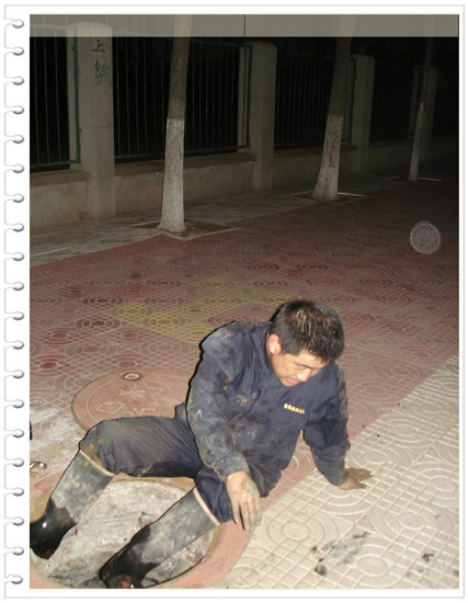 2012年四月的一天晚上,維修隊接到居民報修電話。正在值班的宋修江立即趕往現(xiàn)場。進入污水井內(nèi),發(fā)現(xiàn)在管線下側(cè)貼近污水水面處有2個黃豆大小的眼,氣壓非常大,可以判斷管線為天然氣管線。他知道,排污系統(tǒng)是全部串通的,污水井內(nèi)天然氣泄漏時間一長,整個排污管道很快會全部充滿天然氣,一旦遇到明火,臨盤區(qū)域的整條排污系統(tǒng)將會被掀翻,后果不堪設(shè)想。宋修江和趕來的同事們開始了緊張的搶修。由于漏氣部位緊靠污水井壁,無法打卡子,必須在井壁挖洞才能安裝卡子。污水井的井壁非常堅固,又不能使用電動工具,因為一旦打出星點火花,就會帶來危險。他和同事們蜷曲著身子,輪流在狹窄的排污井內(nèi)一點點地將井壁磚塊敲碎,用手指慢慢的摳……直到晚11點30分,他們終于在堅實的井壁上打出了一個卡子洞,迅速在卡子內(nèi)墊上膠皮,再擰緊螺絲,堵漏成功。這時,老宋和同事們的手指甲都磨壞了,血跡斑斑……