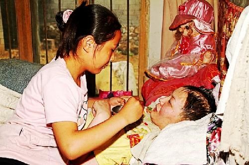 從那時起,這個原本應該享受父母溺愛和歡樂童年的小女孩起早貪黑,穿梭于炕前灶后,悉心照料自己的父母。她每天都早早起床,趕在學校上課之前,扶媽媽坐起來,用打濕的毛巾幫媽媽擦臉擦身,再將煮好的粥一勺一勺喂給媽媽吃,而自己就著粥湯吃下一個煎餅就得趕往學校。中午放學回家趕緊給媽媽做飯嚼飯喂飯,喂藥倒尿,將換洗的衣服浸泡好,下午放學回家再洗出來。