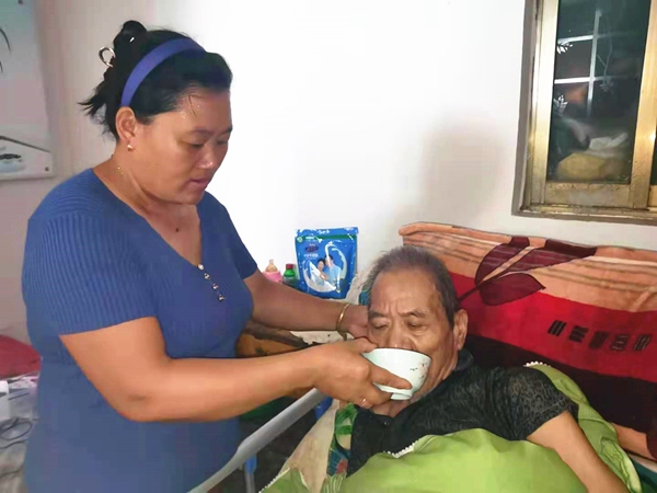 每天起床后,張全芝就把丈夫給公公換洗下來的衣服洗了,做好飯,接下來喂公公吃飯、吃藥、翻身、按摩,忙碌的一天就這樣開始了。這是每天都要做的,每個季度還要帶公公去進行養(yǎng)老金的發(fā)放認證,并且每年要帶公公去中醫(yī)院體檢一次。