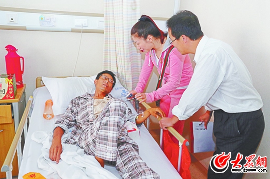 近日,金天德師傅見義勇為身受重傷的事跡經(jīng)媒體報道后,引發(fā)了廣大島城市民的強烈關(guān)注。16日,市北區(qū)委政法委副書記、市北區(qū)見義勇為協(xié)會秘書長劉國穎一行人來到海慈醫(yī)院,看望慰問金天德!爸浪氖虑楹,我們區(qū)里高度重視,經(jīng)過申請,市北區(qū)社會管理綜合治理委員會已會同市北區(qū)見義勇為協(xié)會聯(lián)合下發(fā)文件,授予金天德‘市北區(qū)見義勇為先進(jìn)分子’榮譽稱號,并向市綜治委推薦其為市級見義勇為先進(jìn)分子。這是2013年6月我們成立‘市北區(qū)見義勇為協(xié)會’以來表彰的第一位先進(jìn)分子!眲f在詢問了金天德的病情及身體恢復(fù)情況后,為他送上了慰問金15000元。