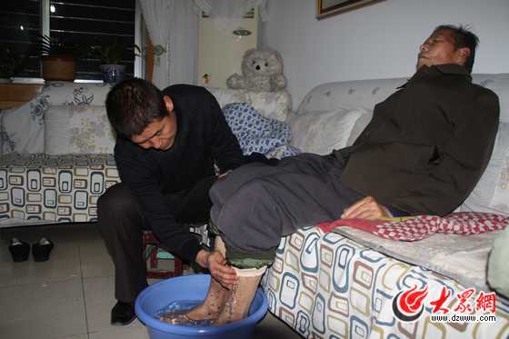 1992年,經(jīng)勝利油田中心醫(yī)院聯(lián)系,狄發(fā)強(qiáng)將老人轉(zhuǎn)到濟(jì)南做腦神經(jīng)固定手術(shù)。岳母一直患有高血壓,照顧老人的重?fù)?dān)再次落在他的身上。由于老人長期臥床,容易患褥瘡,必須常翻身側(cè)睡,還要經(jīng)常按摩失去知覺的胳膊和腿。住院的一個(gè)星期時(shí)間,狄發(fā)強(qiáng)幾乎沒有合眼,體重掉了十多斤。盡管如此,他還是堅(jiān)持上街給老人買愛吃的食物,借別人的鍋灶做好,一勺一勺喂給老人吃,增加術(shù)后營養(yǎng)。醫(yī)院的病友都以為他是老人的兒子,一聽是女婿,都夸老人好福氣。