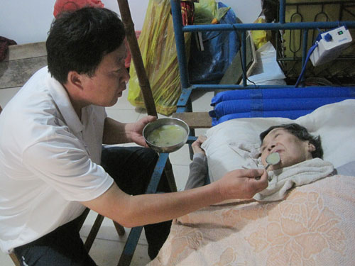 由于長(zhǎng)年臥床不起,患側(cè)肢體血流不暢,大多數(shù)患者會(huì)出現(xiàn)褥瘡、關(guān)節(jié)黏連等各種并發(fā)癥,為了不讓母親有并發(fā)癥,孫立民同志每?jī)商毂憬o她擦洗一次身體,稍有點(diǎn)空就給她作按摩,常常半夜三更起來幫老人按摩翻身。母親不能自己吃飯他就一口一口的喂飯給母親吃。母親行動(dòng)不便不能到理發(fā)店理發(fā),他就買來理發(fā)工具自己幫母親理發(fā),給母親泡腳、洗澡、修指甲精心照顧。大便不通他就忍著惡臭用手指將大便一點(diǎn)一點(diǎn)摳出來,日復(fù)一日,年復(fù)一年,他從來沒有半句怨言。為了豐富母親的生活,他經(jīng)常給母親讀報(bào)講故事讓母親緩解痛苦,還請(qǐng)來街坊鄰居來家里與母親嘮嗑解悶。只要能想到的辦法孫立民總是想盡辦法讓母親高興。
