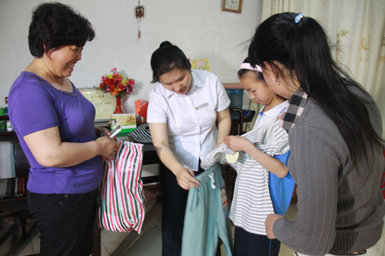 “愛心媽媽”的愛并不拘泥于某種形式,除了過年過節(jié)送去衣物、書包文具、米面油等,在周末或寒暑假都經(jīng)常性的去看看孩子們,和他們聊聊天,或約上孩子們?nèi)ゼ依锍运湥驇ьI(lǐng)孩子們?nèi)ムu平縣城玩,或帶領(lǐng)孩子們?nèi)ゼt十字會給汶川地震的孩子們?nèi)ゾ杩睿蛞黄鹪谑罴賲⒓佑H子運動會……等等。此外,眾多“愛心媽媽”還承擔(dān)起幫孩子交學(xué)費等責(zé)任,不讓孩子們因貧困而輟學(xué)。像首批“愛心媽媽”、山東恩貝集團(tuán)總經(jīng)理朱翠蕓,一直資助雯雯到大學(xué)畢業(yè)。為了報答朱媽媽,雯雯畢業(yè)后提出到朱翠蕓所在的企業(yè)服務(wù),但朱翠蕓沒有同意,而是讓她根據(jù)所學(xué)專業(yè)和意愿找到自己滿意的工作。