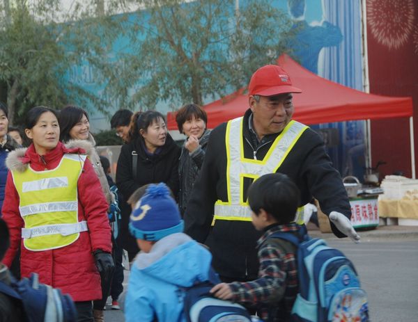 有時候,看到車流量太大,他就主動停下車來,配合一下交警同志,幫助孩子們過馬路。時間久了,方兆斌認(rèn)識了幾名年齡相仿的伙伴,他們也都是來送孩子的家長!拔覀儙讉都是退休人員,送完孩子后,就自覺留下來,幫一把!