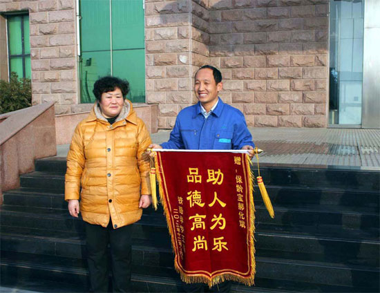 王燕想專門去郝化賓家里,表達(dá)自己的感謝之情。但郝化賓說什么也不同意。于是,王燕制作了一面錦旗,親自趕到保齡寶公司,送到郝化賓手里。