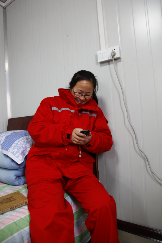2011年3月,劉艷玲不顧家人反對、朋友勸阻,主動要求跟隨30939隊外闖勝利西部(新疆)新區(qū)。初到新疆,一場大雪迎接了剛下火車的她,捂著凍得通紅的鼻子,劉艷玲來不及休息就匆匆趕往新井場。新疆晝夜溫差二十多度,早晨穿著棉大衣,到了中午氣溫就上升到三十多度,由于不方便換衣服,劉艷玲捂出一身痱子。不僅如此,她還因水土不服導(dǎo)致身體過敏,兩個月不到就瘦了十幾斤。為了盡快適應(yīng)惡劣的施工環(huán)境,她積極向男同志看齊:衣服難換,她就學(xué)蒙古人,剪下棉衣袖子縫上拉鏈,熱了就把袖子摘下來;洗澡不方便,她就夜里12點后等男職工洗完再去;沒有“閨蜜”說悄悄話,她與男同事成了鐵哥們。即使在井場上看到毒蛇和蜱蟲,她也能做到鎮(zhèn)定自若,繼續(xù)工作。