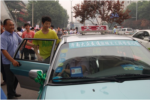 他,把優(yōu)質(zhì)服務(wù)當(dāng)作自己的本職工作;他,服從、配合、支持公安交通管理部門的管理,及時(shí)為公安部門提供犯罪違法信息;他,積極參加行業(yè)及公司的公益活動(dòng);他,見義勇為、拾金不昧、誠(chéng)實(shí)守信、敬業(yè)奉獻(xiàn)。本著泉城義工“展我所長(zhǎng)、盡我所能、傾我真情、回報(bào)社會(huì)”的服務(wù)準(zhǔn)則,自從加入義工隊(duì)伍那天起,一直活躍在學(xué)雷鋒前沿,救助白血病患兒昊軒、義務(wù)接送鐘倩治療類風(fēng)濕、為地震災(zāi)區(qū)捐款、參加植樹造林活動(dòng)、免費(fèi)接送中、高考考生等等,無時(shí)無刻不在奉獻(xiàn)著自己的愛心。這就是濟(jì)南大眾交通有限責(zé)任公司魯AT1181出租車駕駛員張吉迎師傅。