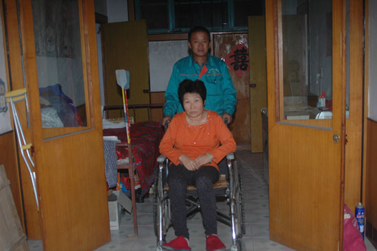 時(shí)鐘轉(zhuǎn)到2006年,這一年,注定對(duì)這個(gè)家庭是不尋常的一年,又一個(gè)災(zāi)難的降臨讓這個(gè)已經(jīng)十分貧困的家庭雪上加霜。原本健康的妻子因受不了生活的困苦和身體的勞累,患上了神經(jīng)癱瘓癥,下肢出現(xiàn)嚴(yán)重異常,從此臥床不起。為給妻子籌集前期診斷費(fèi)用,張鼎成四處借債20多萬(wàn)元,家里僅有的大件就是一臺(tái)親戚給的21寸電視,用“家徒四壁”來(lái)形容這個(gè)家一點(diǎn)不過(guò)。盡管張鼎成盡全力為妻子治病,但妻子始終沒(méi)有好的跡象。因行動(dòng)不便,妻子一天中大部分時(shí)間只能在床上度過(guò),連最起碼的自理能力都沒(méi)有了。為了更好地照顧好妻兒,張鼎成不得不放棄外出打工,每天在家照顧妻兒,給兒子喂飯,為妻兒擦洗身子、洗尿布。與此同時(shí),妻子和兒子高昂的醫(yī)藥費(fèi)和生活費(fèi)也如一座大山全部壓在張鼎成的肩上。面對(duì)這些,張鼎成沒(méi)有退縮,他義無(wú)反顧地扛起了家庭的重?fù)?dān)。每天收拾完衛(wèi)生,安頓好妻兒后,張鼎成就馬不停蹄地去自家地里干活,那是目前家中唯一的經(jīng)濟(jì)來(lái)源。在這個(gè)家里,張鼎成既是丈夫、父親也是“母親”?吹秸煞蛉绱藙诶,妻子王智娟內(nèi)心充滿愧疚和自責(zé),整日郁郁寡歡,以淚洗面,為了不讓癱瘓的妻子著急,張鼎成再苦再累也從不抱怨不埋怨,總是安慰妻子:“你放心,我能干,你們娘倆都能恢復(fù)健康”,他總是邊忙活邊給妻子精神上的撫慰。其實(shí),張鼎成這個(gè)憨厚的男人心里早有了打算,“就算她娘倆不能動(dòng)我也要照顧好,一輩子不離不棄!半m然她生活不能自理,但是回到家能有個(gè)人說(shuō)說(shuō)話,商量個(gè)事兒也行啊”,他經(jīng)常這樣和鄰居說(shuō)。是啊,和妻子說(shuō)說(shuō)話,對(duì)他來(lái)講也是一件無(wú)比滿足的事情。