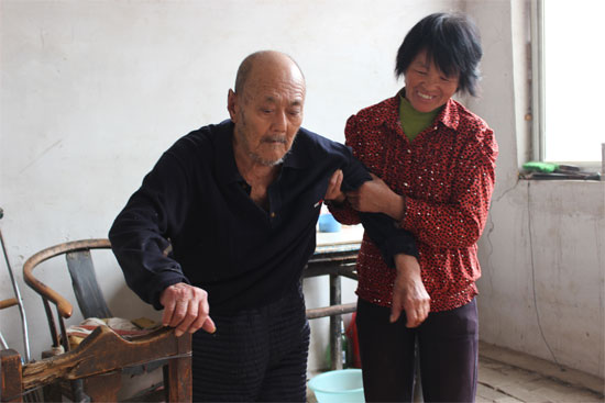 2007年,公公張如華突發(fā)腦血栓,雖搶救及時(shí)沒有生命危險(xiǎn),但卻落得半身不遂,癱瘓?jiān)诖玻顭o法自理,需要人長期照顧。年邁的婆婆因過度勞累早在兩年前已去世,二弟媳婦身體不好,照理公公重?fù)?dān),陳留香義不容辭的接下來了。老人病倒后,脾氣暴躁起來,經(jīng)常說一些令人傷心的話,挨罵是家常便飯,而陳留香卻沒有因此嫌棄,忙完農(nóng)活回來陪老人聊聊天解解悶,一有時(shí)間就攙扶老人鍛煉恢復(fù),老人想吃啥,她總是盡量滿足,從來不嫌麻煩,把老人照顧得舒舒服服、干干凈凈、開開心心,到現(xiàn)在老人已經(jīng)能自己坐起來了,吃飯、上廁所基本能自理了,原來滿是皺紋和苦惱的臉上掛滿了笑容。