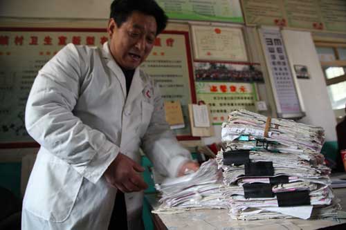 1977年,劉慶民便任職山村民辦中學(xué)教師,但周邊幾個(gè)村卻沒(méi)有一個(gè)醫(yī)生,鄉(xiāng)鄰們每每得了病,不是用架子抬著去縣里醫(yī)治,就是熬著等死!昂脦状危謇锏脑袐D難產(chǎn),在送往鎮(zhèn)上醫(yī)院的過(guò)程中就死了!边@對(duì)劉慶民的打擊很大。面對(duì)連綿的大山,山里人就沒(méi)有活下去的命么?他毅然辭去教師工作,跑到周邊羅家灣村、龍運(yùn)港村學(xué)醫(yī)。就這樣,1979年,20歲的劉慶民在山村里開(kāi)辦了第一家診所,之后又給孩子們接種疫苗。在這之后,劉慶民又不斷參加鎮(zhèn)里、縣里的鄉(xiāng)醫(yī)培訓(xùn)班,為的就是更好為村民看病。有錢(qián)沒(méi)錢(qián)都給看,是劉慶民的原則,幾年下來(lái)他積攢了9萬(wàn)多元的欠條,這些欠條金額大些的有600多元,小的則是幾塊錢(qián),有的單子已經(jīng)發(fā)黃,最早的能追溯到上世紀(jì)七、八十年代!拔伊糁@些單子,沒(méi)有任何要賬的意思,而是告誡子孫們不管有沒(méi)有錢(qián),都要給病人看病!眲c民堅(jiān)定地說(shuō),“做人,首先要對(duì)得起自己的良心,其次是對(duì)得起自己的職業(yè)。我的工作就是救人,而不是賺錢(qián)。當(dāng)遇到?jīng)]錢(qián)看病的人,我們不能說(shuō)不給人家看病,反而要堅(jiān)持給人家看下去!