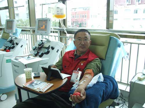 打開王傳忠的抽屜,那厚厚的一沓無償獻血證足足有一尺厚,聽說了他獻血的事,同事們問他:“你的家人都知道嗎?”王傳忠搖搖頭,說自己是瞞著家里人去獻血的,父母并不知道,妻子剛開始的時候是支持他的,后來因為心疼他,早就不支持他做這些事情了……說到這里,王傳忠的臉色有點黯然,“我相信好人有好報,看看我身邊那些獻血的人個個都生活得很好……”