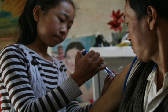 為了省錢,他們舍不得到醫(yī)院治療,陳長青8歲時就從醫(yī)院里學(xué)會打針換藥,擔當起爸爸的“專職護士”,每天吃藥打針都在家里進行,F(xiàn)在,陳士泉的糖尿病引起的并發(fā)癥越來越多,最嚴重的腎衰竭,只能每天用藥養(yǎng)著。每隔4個小時就得換一次透析液,每天打3次胰島素,輔助藥物10多種,每天費用近300元,陳長青原來飄逸的馬尾辮也被剪成短發(fā)為爸爸換成了兩天的藥物。5年來,陳長青基本重復(fù)著一個生活流程:每天早晨5:30起床燒開水,用暖水袋將透析液溫至人體溫度,給爸爸灌透析液;然后,給爸爸在胳膊上打一針胰島素,看著爸爸將各種輔助藥吃完;接著,背著書包到離家3里地的學(xué)校去上學(xué);中午與下午放學(xué)回家后,再重復(fù)著早晨的動作,給爸爸打針換藥。懂事的她,常常在學(xué)習(xí)之余,幫助74歲的爺爺?shù)睫r(nóng)田里干農(nóng)活,幫助72歲的奶奶在家里燒火做飯。