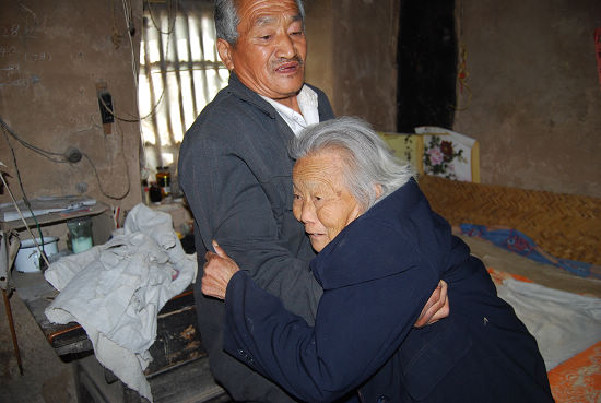 眼看好日子即將來臨之時,岳母的身體又成為大問題。2007年6月,岳母焦玉英因“電解質(zhì)紊亂”突然倒下。經(jīng)過老崔細心照料,一周后出院。盡管腿腳有點不靈便,但身體還算硬朗,生活基本自理,老崔就在附近打點零工補貼家用。2年后岳母身體越來越糟,手漸漸不聽使喚,說話含糊不清,大小便失禁。從此老崔成了岳母的手、腳。4年48個月1460天35040小時,老崔都在重復(fù)著一套工作。寂靜的清晨里,嘩嘩的水流聲,早晨5點,收拾前一天尿濕氈布 ,清洗。由于一年四季浸泡老崔的手變形了,指關(guān)節(jié)突出,不能如常人一般伸直手。做飯,伺候老人起床,穿衣,解手,吃飯,扶著岳母出來曬太陽。晚上給老人換氈布,顧不上自己穿的單薄,老崔的右腿由于受涼常常隱隱的疼。