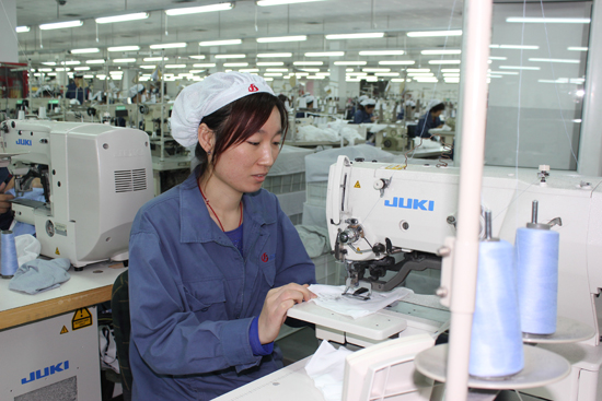 在店集中心社區(qū)即發(fā)華和店集針織有限公司北車間里,筆者見到這個女孩,馬俊俊,馬俊俊給人的第一印象是瘦弱,工作服穿在她身上顯得有些肥大。雖然在車間里屬于“年輕人”,但是她確是這里的“老員工”。