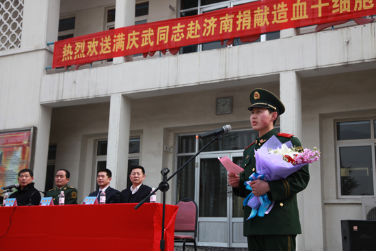 入伍后他加入了中華骨髓庫。2012年春節(jié)剛過,他接到紅十字會通知,自己和一名白血病患者配型成功,患者的所有生的希望都寄托在他的身上。滿慶武說,高中時曾有同學患白血病去世,這對他觸動很大,因此他決定捐獻造血干細胞。2012年3月8日,滿慶武在省立醫(yī)院捐獻130毫克血細胞液,當天晚上就輸入到了江蘇籍白血病人體內,患者病情重現(xiàn)曙光。滿慶武成為了山東省第188位,全國第2663位造血干細胞捐獻者。