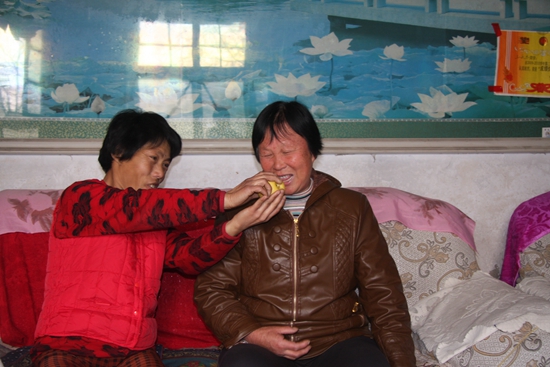 陳愛云和劉沒學做鄰居已經(jīng)十年,在陳愛云眼里,劉沒學是個讓人心疼的“苦命人”。因為小時候大腦受到損傷,劉沒學走路只能靠半邊身子帶動往前一步步挪,語言系統(tǒng)也有障礙,情緒一激動,話就說不清。天降橫禍,兩年前丈夫意外去世,劉沒學只能和9歲的兒子相依為命。怕劉沒學看不開,陳愛云三天兩頭往她家里跑,一邊流著眼淚一邊勸導她,讓她為了孩子說啥也得好好活下去。劉沒學不吃不喝,陳愛云就想辦法把她誆到自己家來,說是讓她過來幫忙做些力所能及的農(nóng)活,等她來了,陳愛云就把熱騰騰的飯端到她面前。就這樣,一天天的陪伴,一句句的安慰,一點點的幫助,劉沒學逐漸從陰影中走了出來,有了活下去的信心。
