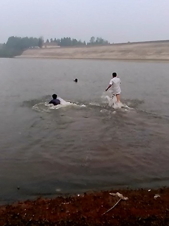 2014年6月27日,星期五。山東省日照市莒縣國土資源局職工牛慶龍同志因母親病故,正悲痛地和親朋一起在山東省日照市莒縣小店鎮(zhèn)窩疃村家中舉辦喪禮。這時,忽然聽到村前傳來:“救命啊,救命啊”的急促呼救聲。按照山東省的地方民間習(xí)俗,孝子在舉辦喪禮時,決不能亂動,必須跪在靈前。救人要緊,這個念頭在腦中一閃而過后,牛慶龍強忍心中悲痛,顧不得脫去身上的重孝服,一個箭步從家中跑出來,來到村前窩疃水庫一看,水庫岸上有一圈人。由于這個水庫太深了,有近二十米深,圍觀的人都被嚇得不知所措。當(dāng)時,水面上只有一團黑色的長頭發(fā)在上下翻動,沒有人敢于下水施救。在這情勢危急、性命攸關(guān)的時刻,顧不得多想,牛慶龍一個猛子扎到水里,奮力向落水者游去,可是被救人求生的欲望非常強烈,死死地攥住牛慶龍的胳膊不放,使牛慶龍無法游泳。經(jīng)過數(shù)十分鐘的努力,牛慶龍終于將落水者安全救到岸上。落水者名叫翟文華,是莒縣小店鎮(zhèn)呂家崮西村,這次在探親的途中,不慎落水。經(jīng)過緊張的人工呼吸等施救,被救者終于恢復(fù)了呼吸,并恢復(fù)了神智。而這時,牛慶龍卻悄悄地離開了,回到家一看,時間已經(jīng)是晚上9:00多了。當(dāng)時天降大雨,水庫的水又非常涼,當(dāng)回到家時,牛慶龍同志自己卻由于精疲力竭、嚴(yán)重受凍差點昏了過去。事后,落水者的家人萬分感謝并留下禮品。牛慶龍同志在窩疃村委會的幫助下,看望了落水者,退還了禮品,一再說明:這是我們應(yīng)該做的,換誰都會這樣做,不用謝我們。6月28日,落水者家長將“重生厚德”的錦旗和感謝信送到我局表示感激之情,《日照日報》、《莒州通訊》和莒縣電視臺等多家新聞媒體聞訊后紛紛來莒縣局作了采訪報道,引起強烈的社會影響。