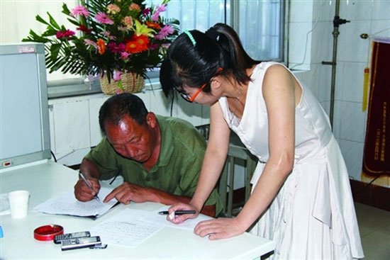 7月1日14時,李再響和妻子面前擺了一份捐助器官同意書,兩個人識字不多,但還是清楚的知道協(xié)議書中的內容。在紅十字會工作人員的幫助下,李再響先簽了字,但手還是抖了幾下,妻子接過李再響遞過來的筆,一邊簽字,一邊哭,工作人員輕輕拍著她的肩膀。