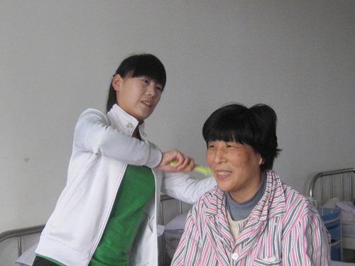 就在焦鈺軒剛剛懂事的時候,媽媽突然發(fā)作了神經(jīng)病,不僅不能做飯照顧家庭,還經(jīng)常打人、罵人、摔東西,破壞鄰居家的東西,家庭里里外外的事情都落在了爸爸一個人身上。看著爸爸忙里忙外的身影,焦鈺軒幼小的心靈里有了心疼的概念,主動幫爸爸干起了力所能及的家務活。七、八歲時,同齡人還在父母懷里撒嬌的時候,她就學會了洗衣、做飯、飼養(yǎng)家畜,還要照顧媽媽的生活。由于媽媽的原因,很多小朋友都不愿意和她玩,還開她的玩笑,但她從來不因為別人的譏笑而嫌棄媽媽,用愛心、細心和耐心照顧媽媽,一干就是十八年。不管媽媽能否聽明白,她都很耐心的和媽媽說自己的見聞和經(jīng)歷,和媽媽說她生病以前點點滴滴,以喚起媽媽內(nèi)心深處的記憶,幫助媽媽早日康復。盡管為媽媽治病花掉了家里所有的積蓄,還負債累累,但她一直堅持和爸爸跑了很多家大醫(yī)院診斷治療媽媽的病,從來不放棄給媽媽的治療。因為在她心里一直堅持著這樣一份執(zhí)著:“總有一天,媽媽肯定會好起來”。