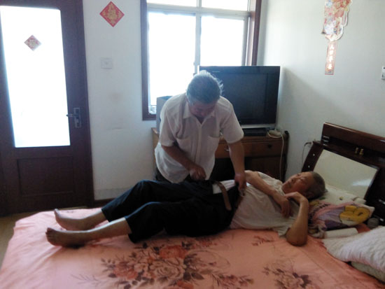 柴守富的叔叔今年91歲高齡,膝下無子無女。應(yīng)邀來到他家已有幾年時間。他對年邁的叔叔照顧的比親生父母還上心。他經(jīng)常說:“叔叔年輕時沒有孩子已經(jīng)很失落了,不能讓叔叔的老年生活再有不快,我就是叔叔的兒子!辈袷馗谎孕幸恢,幾年如一日,毫無怨言的贍養(yǎng)照顧,每天從幫叔叔穿衣開始,衣食住行,無微不至。妻子在醫(yī)院做透析時,柴守富利用妻子在醫(yī)院做檢查不需要自己在場的時間見縫插針的回家給叔叔穿好衣服,做好飯菜,喂叔叔吃飯。對高齡叔叔的飲食起居,柴守富格外上心。做飯變著花樣,每餐飯菜,燉的很爛很軟,餐餐必備一個湯,讓老人吃的舒服,容易吸收。和叔叔聊天時會問問老人想吃什么,想喝什么,蔬菜.蛋奶.魚肉.水果,每天營養(yǎng)搭配,盡力保持均衡。人歲數(shù)大了,身體里需要的東西肯定和年輕人不一樣,小麥、玉米、小米、高梁、蕎麥多吃。做米飯摻在米飯里。煮粥時放入紅小豆、綠豆、豇豆,改善味道,增加營養(yǎng);驘醭啥桂W,做成豆包。尤其綠豆,清熱解毒、消暑止渴。每到夏季,煮一鍋綠豆湯,放涼喝或熱飲,消暑解渴有營養(yǎng)。叔叔的腸胃隔天食用一個山雞蛋。胡蘿卜做成泥,苦瓜弄成雞蛋餅,為預(yù)防便秘,每周包兩次的芹菜餃子,刺激腸蠕動。木耳、紫菜湯經(jīng)常出現(xiàn)在早餐的飯桌上,大蒜搗成泥、加點(diǎn)醋調(diào)胃口,洋蔥切的碎碎的炒雞蛋、西紅柿打成汁。一日三餐,餐餐上心。老人習(xí)慣保持的也很好,每天三餐餐后刷牙,每次柴守富都保持洗手間干爽,先擠好牙膏,杯子里倒好溫水,提醒著叔叔,該刷牙了。對叔叔穿的鞋子很是細(xì)心,要求舒適為主,必須防滑。買的每雙鞋子他自己先穿在腳上,走走試試,看合不合腳。老人91歲高齡,活動空間有限,為彌補(bǔ)活動量的不足,一有時間他就給叔叔按摩,推拿,從手指到腳底,力道適度的捶捶打打,疏通經(jīng)絡(luò)。每晚的泡腳更是仔細(xì),叔叔把腳放進(jìn)水盆之前柴守富先把自己的腳放到水里試試水溫。問他為什么不用手試試?他說腳試水好。手覺得合適的水溫,再熱一些腳會更舒服。問他“65歲了,每天這么大的勞動量,天長日久,都怎么堅(jiān)持的?”他憨厚的笑著說:“別人都忙著早早晚晚出去鍛煉身體,我的身體家門不用出就鍛煉了,還比他們每天多活動。不說別的,就說走路,我現(xiàn)在的步行速度有的小伙子都沒有我快!逼拮拥娘嬍骋髧(yán)格,叔叔的飲食也不含糊,小孫子還在長身體,是全家的希望,吃的喝的更是照顧有加。柴守富對老老少少盡心盡力,盡其所能。只要對家人好的,自己千方百計(jì)的想辦法做到。他所付出的辛勞,有目共睹。這樣照顧叔叔的侄子真不多見。自己的父母這么伺候,已是孝子,何況叔侄。
