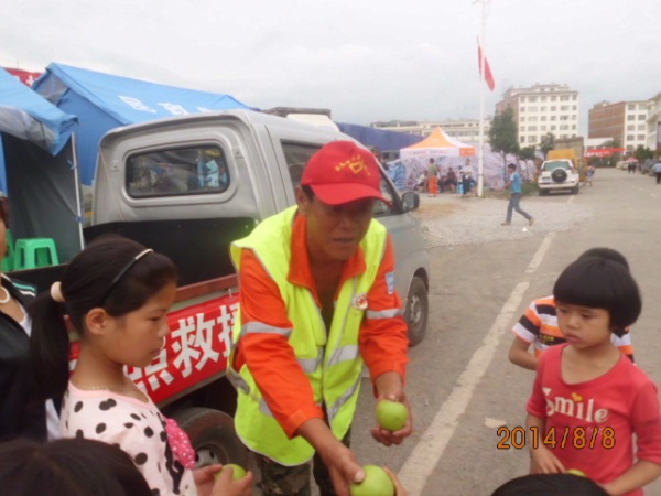他的妻子王均花給他煮了幾十個(gè)雞蛋,買上了二十斤煎餅,院子里自己種著大蔥,拔了一捆大蔥,從街上買上了水果、礦泉水。8月4日11點(diǎn),載著日照人民的深情厚誼,趙龍海開著他的小貨車奔赴云南魯?shù)。?jīng)過五千多里的疾駛,8月6日下午,趙龍海來到了魯?shù)。趙龍海到了當(dāng)?shù)孛裾块T,請(qǐng)求加入救援志愿者隊(duì)伍。