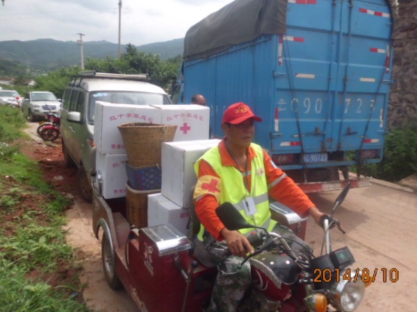 “1、2、3、4……”已經(jīng)是疲憊不堪的趙龍海數(shù)了下,8月13日已經(jīng)是他在災(zāi)區(qū)救援的第8天了。隨即,他如數(shù)家珍地說起這幾天的救援情況:“我6號(hào)中午到了魯?shù)楹螅鹊娇h里報(bào)到,把物資送到民政局,再在縣里的統(tǒng)一指揮下,被安排在縣城運(yùn)送物資給部隊(duì)、醫(yī)院;8號(hào)、9號(hào),我被安排往山上的火德紅鎮(zhèn)運(yùn)送物資,海拔2000多米的山,路兩邊就是懸崖峭壁,二三十公里路要走四五個(gè)小時(shí);10號(hào),我又送物資到在震中龍頭山鎮(zhèn)龍泉社區(qū);昨天今天跑小寨。”