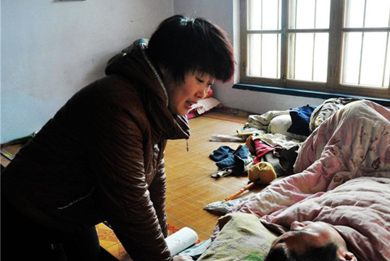 四個(gè)月,橫跨整個(gè)冬天,劉文硬是打著地鋪熬了過(guò)來(lái)。地面磚的冰冷穿過(guò)薄薄的褥子打到身上,那種刺骨的寒冷,劉文現(xiàn)在回想起來(lái)還記憶猶新。老人治療期間醫(yī)生曾多次下達(dá)過(guò)病危通知書(shū),但是她和丈夫都沒(méi)有放棄。為了照顧好公公,劉文曾經(jīng)三天三夜沒(méi)有合眼,也曾徹夜為公公捶背捶胸以打開(kāi)被痰包裹的肺葉,還不斷地向醫(yī)生、護(hù)士請(qǐng)教醫(yī)學(xué)、護(hù)理知識(shí),甚至學(xué)會(huì)了為公公“吸痰”和給傷口換藥,四個(gè)月下來(lái),儼然成了半個(gè)醫(yī)生。公公病時(shí)大小便失禁,劉文常常放下手中的飯菜就去用手接老人的大便,當(dāng)時(shí)很多病友都不肯相信劉文是老人的兒媳婦而不是女兒。最后,208天的悉心照料挽回了公公的生命,也讓劉文將自己的命運(yùn)和這個(gè)家庭緊緊地聯(lián)系在了一起。